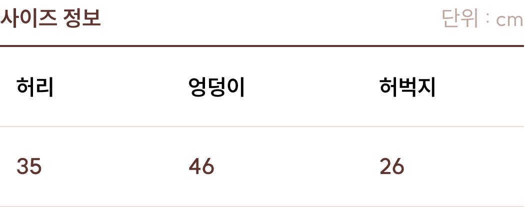 사이즈 : 55~66 (허리 35 / 엉덩이 46 / 허벅지 26)