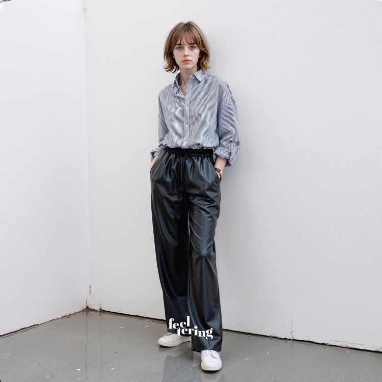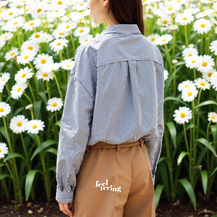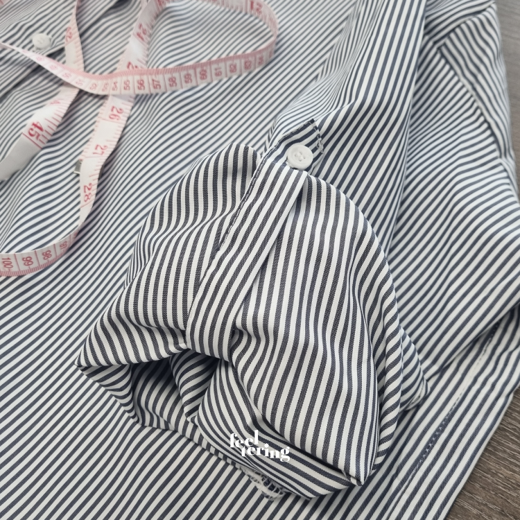 (구김 적은 쿨링 원단 / 드라이한 촉감)Color: 네이비 스트라이프