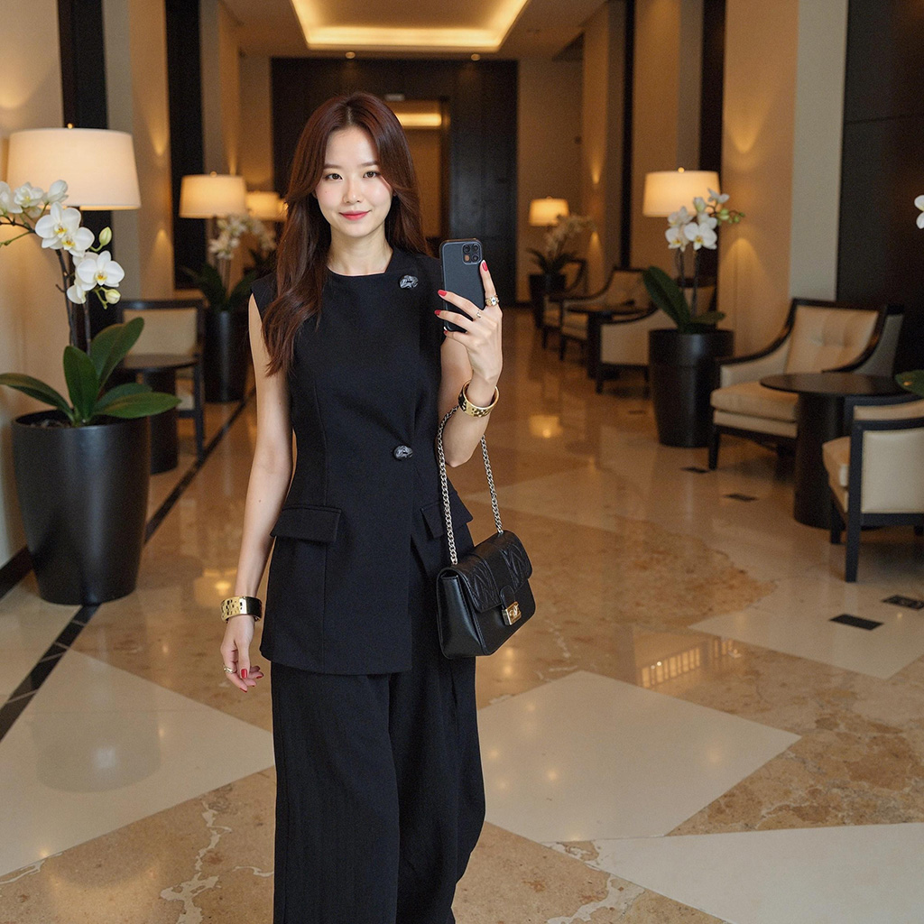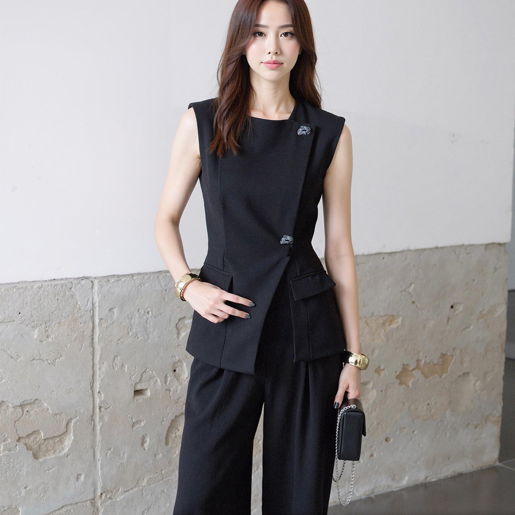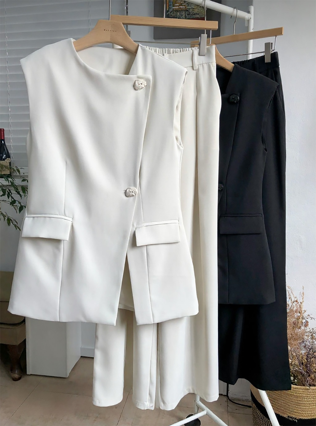 ✔️ 민소매 자켓 + 일자핏 팬츠 세트